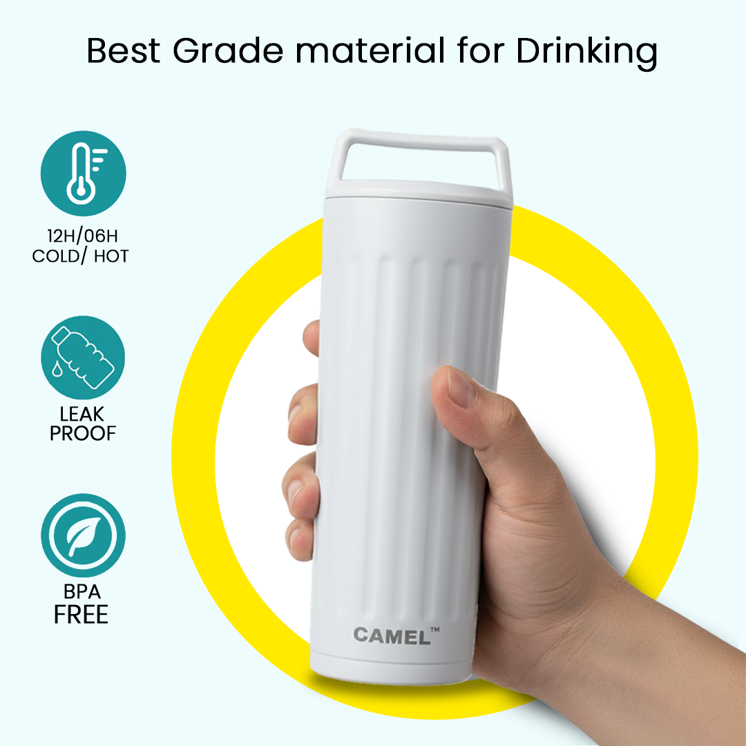 Thanks to double-wall vacuum insulation, the Camel Essentia Tumbler keeps your drinks cold for up to 12 hours and hot for up to 6 — perfect for any adventure.