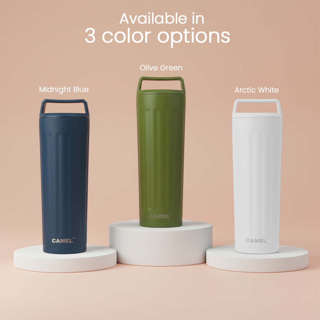 With its built-in handle, matte texture, and pro-grade stainless steel body, the Camel Essentia Tumbler delivers durability with effortless style.