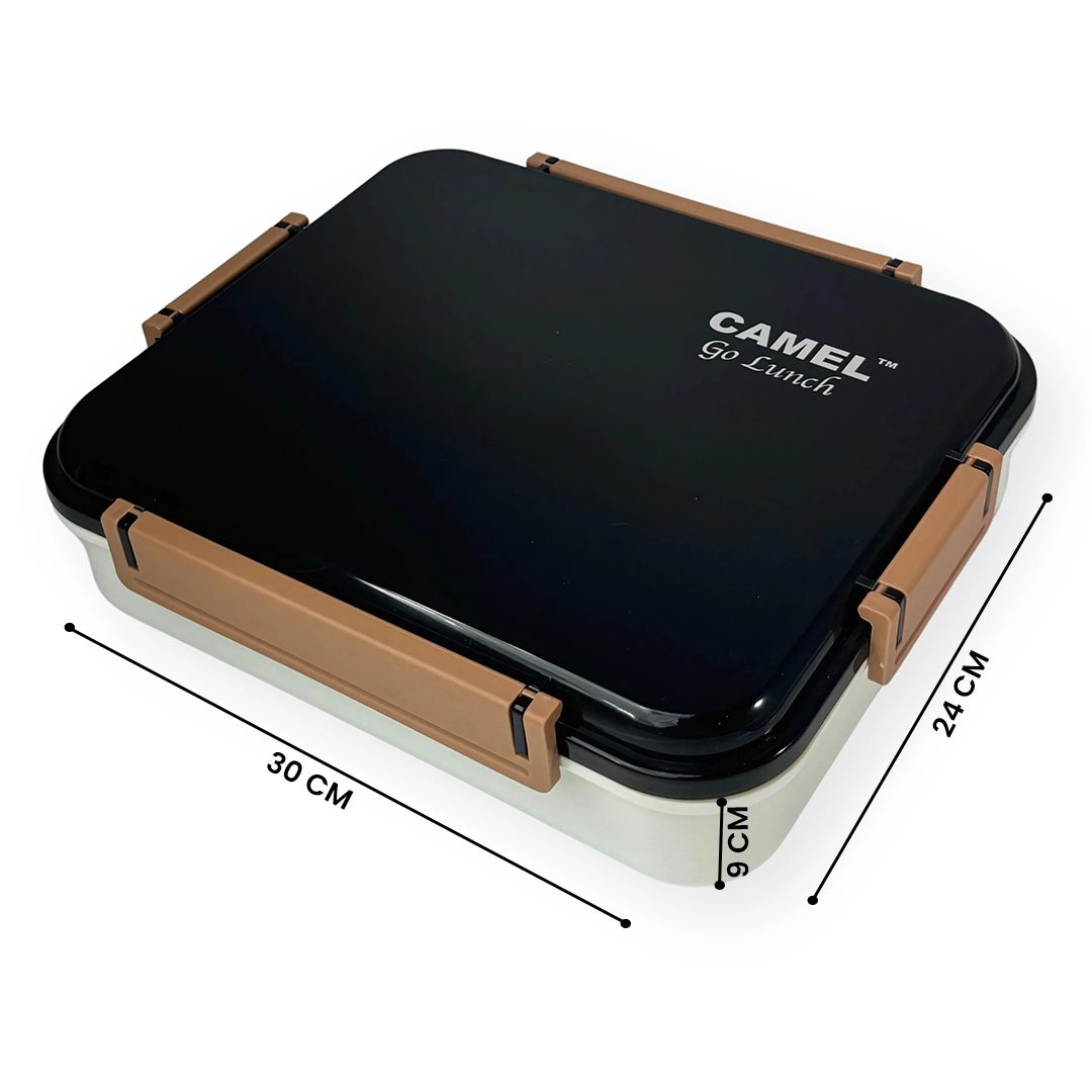 The Camel 4 Containers Bento Lunch Box offers a compact, multi-compartment design to keep your meals organized and fresh. Ideal for work, school, or on-the-go, it ensures convenience and style in every bite.