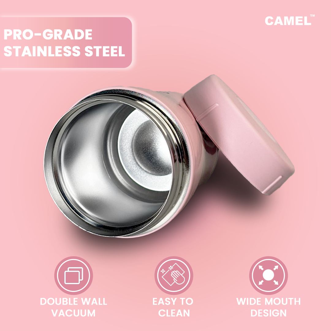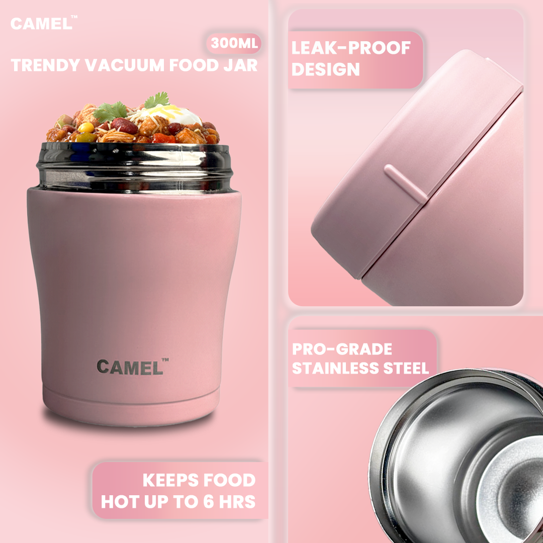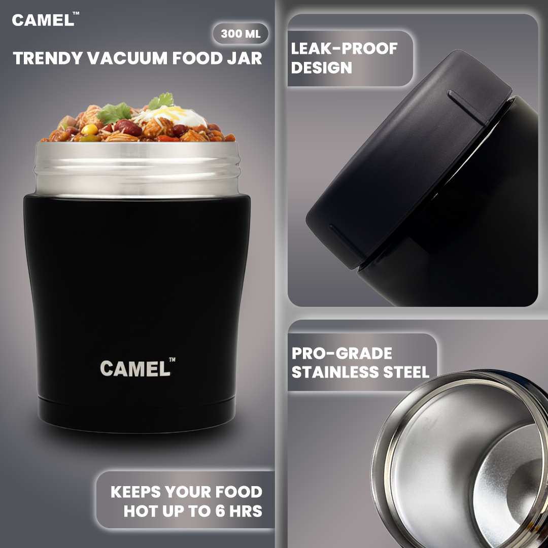 The Camel Trendy Vacuum Food Jars combine a stylish look with practical features ā anti-rust finish, BPA-free build, and a better grip for effortless use.
